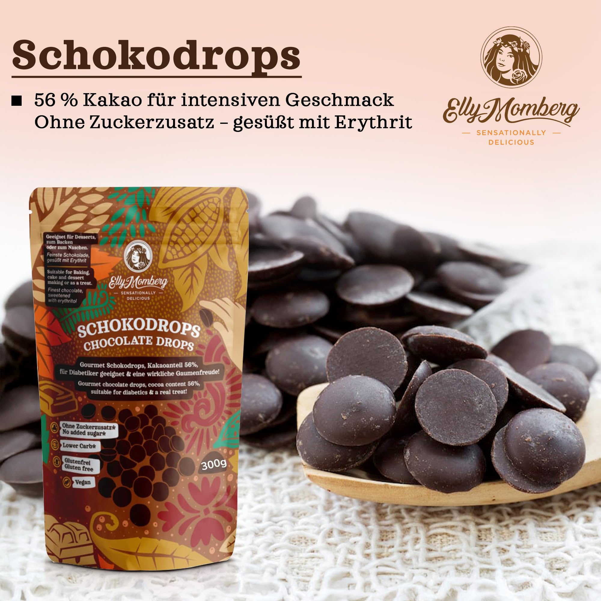Our premium chocolate drops (56% cocoa) are the perfect choice for baking, decorating, or simply enjoying as a treat. They offer pure chocolate flavour with significantly fewer usable carbohydrates — ideal for conscious enjoyment.